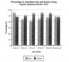 IELTS Bar chart - percentage of people who ate five portions of fruits and vegetables