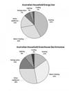 The juxtaposed pie charts elaborate on the data regarding energy is used in an average and the greenhouse gas emmissions in Australian household.